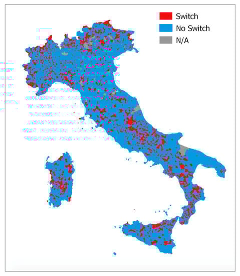 Geographical distribution of switching and not-switching municipalities.