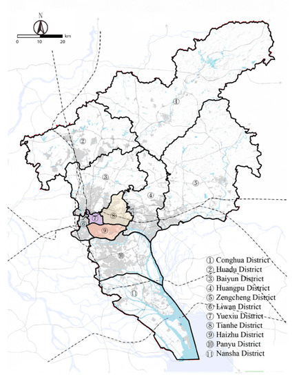 - Guangzhou Government. Guangzhou Master Plan (2010–2020) (Preview Version); Guangzhou Government: Guangzhou, China, 2016.