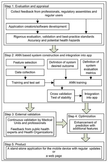 A schematic representation of a workflow that could be applied for the construction of an app that incorporate an ANN is given in Figure 1.