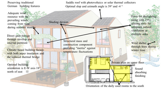 At the preliminary (early design) stage, this paper mainly focuses on the conceptual design. Rather than proposing three completely different buildings per climatic zone, this study firstly works with a generic model as a base case, and then modifies it according to three different design scenarios in cold (Stockholm), temperate (Berlin), and hot–humid (Rome) climatic zones, respectively. The generic model acts as a detached house for a four-member household. Accordingly, all three designs variants rely on the same basic concept, but are adapted to the climatic conditions for the individual climate zones, in order to guarantee a carbon-smart solution architecture for each building.