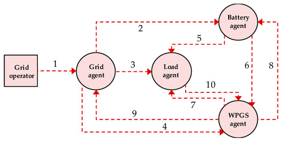 - A MAS-based distributed control technique has been developed for PMS of DCMG including four agents of the grid, WPGS, battery, and load. In the PMS, by investigating the information obtained from both the local measurements and the neighboring agents via communication lines, all the agents determine not only optimal operating modes for local controllers but also the proper information to be transmitted in order to guarantee the system power balance under various conditions. By using this control scheme, the drawbacks of the existing centralized and decentralized controls are eliminated. In particular, the control mode of the agents can be determined locally without CC, which contributes to avoid the common single point of failure as in the centralized control. Since each agent is controlled by its own local controller, the computational burden is shared by local controllers. In addition, the problem related to communication failure can be avoided by using the proposed reliability improvement algorithm. As compared to the decentralized control, the problems related to the lack of exchanged information can be solved by means of communication network.