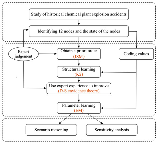- We Use the Dempster-Shafer theory and the ISM-K2 algorithm to construct a Bayesian network model for chemical plant explosion accidents and the EM algorithm to learn its probability distribution;