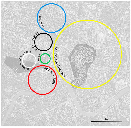 Sustainable building: Many reports referring to eco-friendly and sustainable building in Poland have recently appeared. In March 2019, the Polish Green Building Council (PLGBC) published its yearly report entitled “Polish certified green buildings in numbers—2019 analysis” [56], according to which Poland remains a leader in BREEAM, LEED, HQE, WELL, and DGNB certification in Central-Eastern Europe (51% of the region’s certified buildings are located in Poland), Polish buildings have started to be certified during the construction stage through LEED Core & Shell certification and have obtained Existing Buildings certificates (this combination is much more often seen in the BREEAM certification system). A final WELL certificate in Poland has also been issued for the first time, as has a BREEAM certificate for a school buildings. Krakow came second in terms of the number of certified buildings. The presented statistics clearly demonstrate that the construction sector has become accustomed to the various certification methods and although this rarely pertains to public sector buildings, it does provide hope that this will change in the future. The accessibility of existing stadiums, their adaptation to current standards and their environmental impact are a separate matter. The organisers will have to address the question of whether or not the modernisation of these venues is economically and socially feasible. This is why it is difficult to reliably estimate the need for stadiums and their environmental impact. Figure 2 shows the surface area of the city that the necessary Olympic Games infrastructure would occupy.