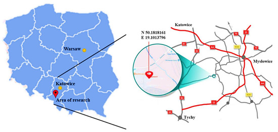 Location of the Upper Silesian Coal Basin area where the research was conducted (own study based on [9,45]).