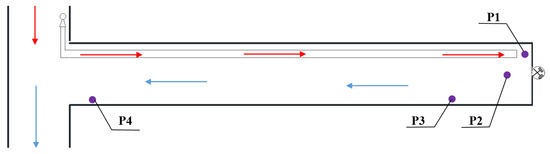 A scheme of the heading indicating the distribution of air and the measurement points where methane sensors were located (own study).