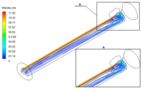 The stream of the air and methane mixture flowing through mine headings, including the excavated dog heading, is of a turbulent nature. It is necessary for the model to take into account the complex structure of flow turbulence due to the significant intensification of all the transportation processes occurring in turbulent flows [51,52].