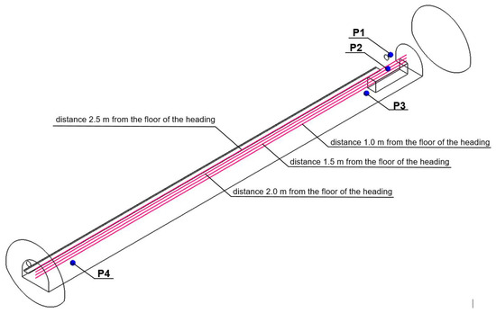 In the case at hand, the fractures zone around the excavated dog heading was determined on the basis of the study results presented in the paper [54]. It was assumed that the test results presented in the paper are reliable and referred to the specificity of Polish underground coal mines. In terms of rock resistance, geometry of the heading under analysis and the depth of its excavation, they correspond to the parameters of the heading analyzed and the bed in which it is excavated.