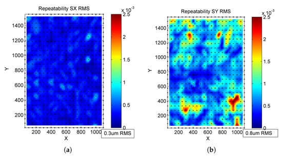 . Each directional repeatability map shows higher variations away from the central area of the mirror, as does the vector deviation map (