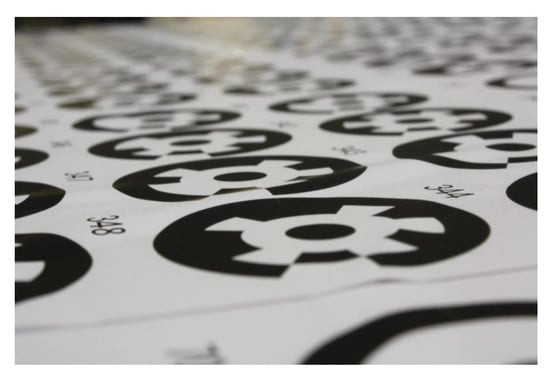 Changing the aperture size affects the depth of focus of the image, which is essential in maintaining a sharp image across the whole surface. It is possible to predict the approximate aperture size by calculating this depth of focus and also the amount of “blur” a point will have depending on its distance from the camera. For instance, a point that is entirely within the depth of focus will be sharp; however, a point near the edge or outside the depth of focus will have a certain amount of blur associated with it. The size of the sphere grid is 800 m × 800 m with the longest diagonal of 1100 mm. This distance must fit well within the field of view of the camera to reduce the image distortions around the outer edge of the lens. This sets the minimum distance at which the photographs must be taken from and depends on the focal length of the camera, which determines the field of view. The focal length of the camera has been set at its repeatable end stop of 18 mm, giving a minimum distance to the target of approximately 1600 mm. The distance between the camera and each sphere was calculated by using this distance and the positions of each sphere in the grid. For each of the 25 distances, it is possible to apply a blurring equation to calculate the size that a point source would appear on the camera sensor. This equation was applied for different aperture settings from to and was done for each of the 8 camera positions, and a total effective blur was found by adding the contribution from each position. The results show that the minimum total blur of mm occurs with an aperture of .