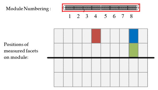 Measurements were done on four single facets, three outer facets and one inner facet across three collector modules in the same row. The facets measured are detailed in