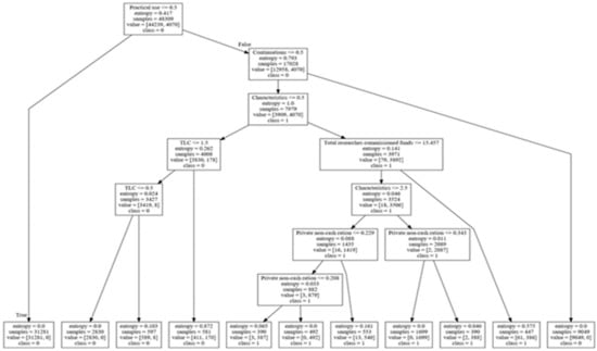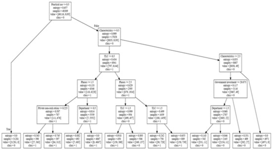 Decision tree analysis classifies decision rules into a tree structure to perform the classification and prediction. It is a data mining-based distribution technique that searches for large amounts of unexpected or valuable structures. After the major input variables in a large amount of data are found, decision tree analysis is useful for effectively analyzing the interactions between the individual factors to determine how the various interactions affect the target. In addition, since the analysis process is expressed through a tree structure, it is easy to interpret.