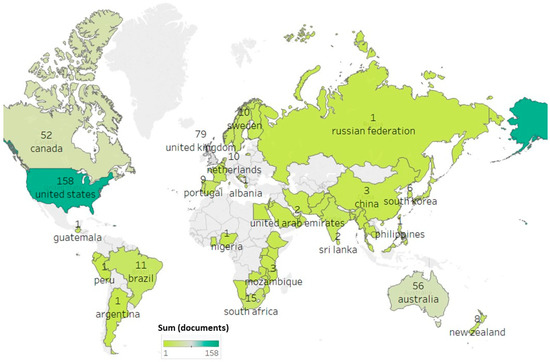 Author location was analyzed in order to gain insight into where scholarly interest in SHM research has been located. This body of literature was authored in 75 different countries around the world, thereby affirming worldwide interest in the topic (Figure 3). At the same time, however, we noted that authorship has been focused the United States (USA; 158), United Kingdom (UK; 79), Australia (56) and Canada (52). Scholars affiliated with these four societies generated more than half of the SHM knowledge base collected for this review.