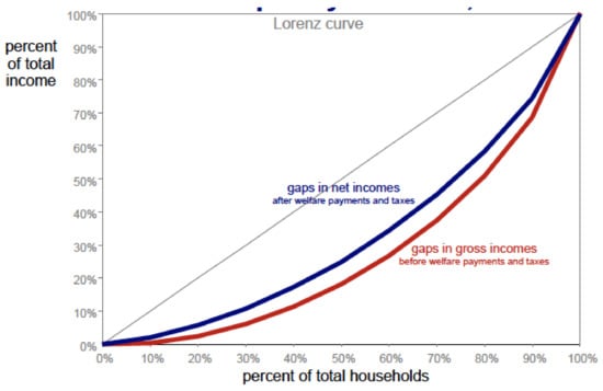 Questions of environmental justice must be understood within the overall context of the pervasive economic disparities within Israeli society. Figure 1 is a Lorenz curve based on data from Israel’s National Insurance Agency, characterizing significant income inequality in Israel. Indeed, the OECD recently reported that while there has been a modest drop in the standard Gini coefficient (from 0.36 to 0.34), average disposal income of Israel’s wealthiest 10% remains 13.3 times greater than among the poorest decile. (The OECD average ratio is 9.4.) Some 20% of Israeli live in relative poverty, the highest proportion found among all OECD countries []. But are unsustainable consumption patterns—and greater environmental impacts—part of the way that this income disparity is manifested?