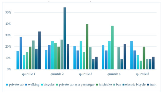Common means of transportation across Israeli society according to socioeconomic quintiles.
