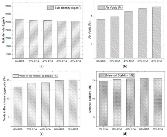 - As the percentage of recycled concrete aggregates in asphalt mixes increases, volumetric properties such as air voids and voids in the mineral aggregates increase causing a reduction in their bulk densities.