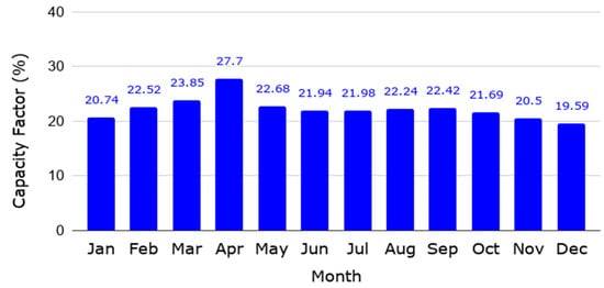 - The capacity factor (CF) of this system was found to be 22%, which is more reasonable than similar grid-connected systems in the GCC region, as found in the literature. The monthly capacity factor ranges between 23.85% in March and 19.59% in December.