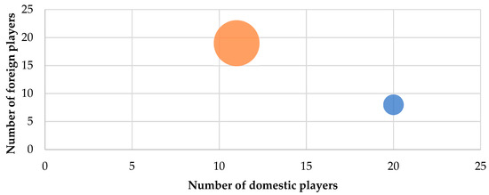 To better demonstrate the ratio of the number of foreign and domestic players, a cluster analysis of the K-means cluster was also performed (Figure 3).