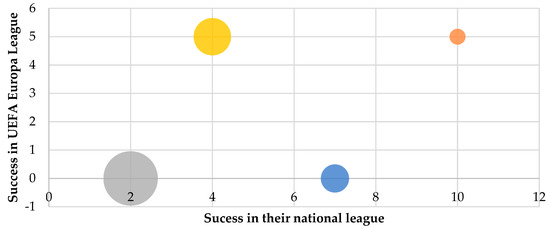 In this case we also used cluster analysis. In Figure 5 below is demonstrated the relationship between success in the UEFA Europa League and success in the national league.