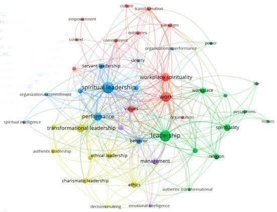 The cluster analysis shows that workplace spirituality is one of the main research topics undertaken in spiritual leadership literature, with many studied trends. However, there are no terms directly related to sustainability in the workplace.