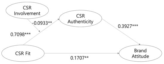 In this study, the Sobel test was performed through sequential regression analysis in accordance with the method proposed by Baron and Kenny [34] to confirm the mediating role of CSR authenticity. As a result, the Z value was larger than the absolute value of 1.96 (Sobel test statistics = 4.31). Accordingly, the authenticity of CSR was found to play a significant role in the relationship between CSR fit and brand attitude.