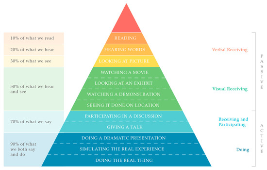 Cone of Learning. Source: Dale, E. Audio-visual methods in teaching; Holt, Rinehart and Winston: New York, NY, USA, 1998.
