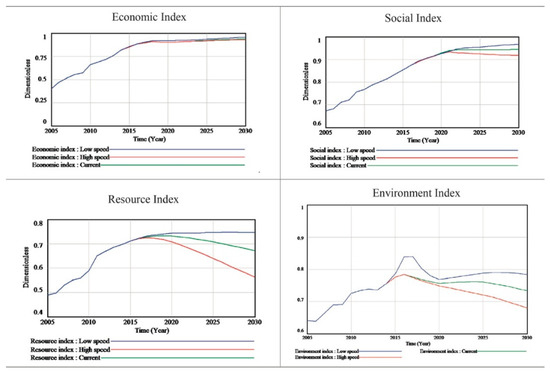 SDM simulation results of economic, social, resource and environmental index (Source: Tan et al., 2018).