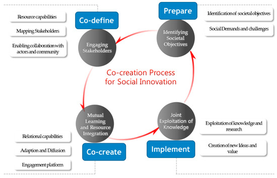 Co-creation activities among actors rely on the resource capabilities of other actors; the networking and relationships between embedded actors determine the diffusion of knowledge, and integration of resources [51]. Moreover, relational capabilities to interact with external partners transform the social relations by redistributing resources and power among the actors. An actor with superior relational capabilities can interact better than other actors with partners, and thus has superior access to knowledge and resources, and can thus enhance the co-creation process. This diffusion of knowledge and research by integration and transformation of social relations, governance, and power structure are the basic components of social innovation [52], and the process presents a new solution to attain sustainability in society [53].