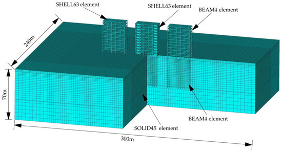 - Padron, L.A.; Aznarez, J.J.; Maeso, O. Dynamic structure-soil-structure interaction between nearby piled buildings under seismic excitation by BEM-FEM model. Soil Dyn. Earthq. Eng. 2009, 29, 1084–1096. [Google Scholar] [CrossRef]