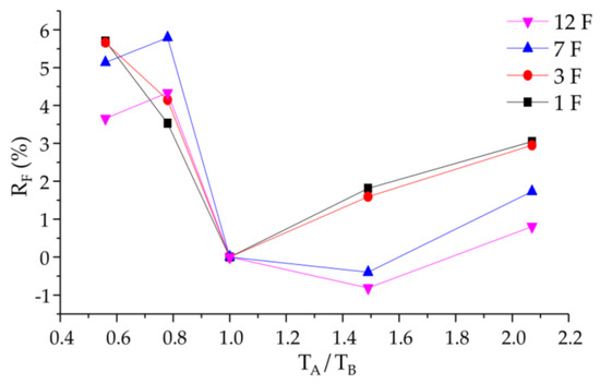 - The largest RD was for the model 9-12-9, and the largest RF was for the models 9-12-9 and 6-12-6. However, the RD and RF of the model 24-12-24 were relatively small. According to the numerical calculation, the predominant period of the soil was 2.05 s, and it was close to the first natural period of the 9-story frame structure, which was 2.01 s. Therefore, the seismic responses of the 9-story frame structure in the model 9-12-9 were more significant. Therefore, the dynamic through-soil interaction with the middle 12-story structure was also greater. This suggested that the first natural vibration period of the structures had a more significant impact on SSSI than the height and the mass of the structure on each side in the case of this study.