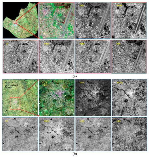 - Waqar, M.M.; Mirza, J.F.; Mumtaz, R.; Hussain, E. Development of New Indices for Extraction of Built-Up Area {&} Bare Soil. Open Access Sci. Rep. 2012, 1, 1–4. [Google Scholar] [CrossRef]