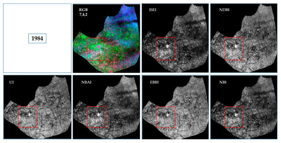 - Azmi, R.; Alami, O.B.; Saadane, A.E.; Kacimi, I.; Chafiq, T. A Modified and Enhanced Normalized Built-up Index Using Multispectral and Thermal Bands. Indian J. Sci. Technol. 2016, 9, 1–10. [Google Scholar] [CrossRef]