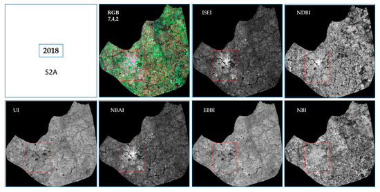 - Valdiviezo-N, J.C.; Téllez-Quiñones, A.; Salazar-Garibay, A.; López-Caloca, A.A. Built-up Index Methods and Their Applications for Urban Extraction from Sentinel 2A Satellite Data: Discussion. J. Opt. Soc. Am. A 2017, 35, 35. [Google Scholar] [CrossRef] [PubMed]