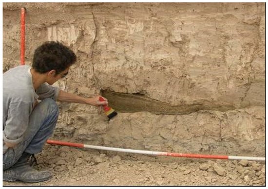 The Susiana Plain in Southwestern Iran was a major developmental center for early complex agriculture; probably because farmers could choose between dry and irrigated farming, and there was ready access to trade routes from the Persian Gulf to the Iranian plateau across the Susiana. The evidence from the ancient Susiana has been augmented by comparison to other zones in ancient Iran, albeit from the ‘Initial Village period’ ca. before 5000 BC identified by [34]. Southwest of Iran, east of the Tigris river, between the Dez and Karun rivers, approximately 75 km from the place where they join, the city of Chogha Mish flourished. This dry farming region did not have major channel irrigation before around ca. 1500 BC. However, in the Protoliterate time (ca. 3400–2900 BC), it was a “planned town with several streets, sewers and drainage canals, side alleys, workshops, public and private buildings, and water wells and cesspools”. In this region, clay soil pipes and baked clay bricks were used as drainage systems, as shown in Figure 2 [35,36,37].