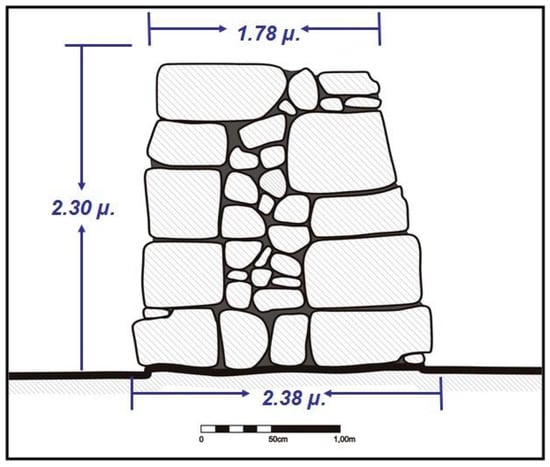 The drainage system of Kopais has also indicated considerable hydraulic works, which probably drained it during the late Mycenaean period (ca. 1450–1300 BC). Based on Strabo (IX 406–407, 414–415), the draining canals of Kopais were obtained by the Minyes and are considered descendants of Minoans as noted above [55]. The earthen dykes furnished by cyclopean walls were made at Lake Kopais, and three major canals with the dimensions of 40–50 km in length, and 40–80 m in width, and some walls up to 2–3 m thick traversed the previous lake area (Figure 4) [52].