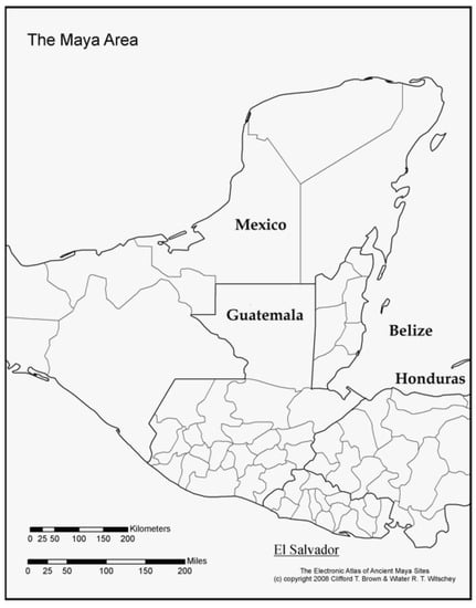 - Walter R T Witschey. Available online: http://mayagis.smv.org/Maya%20map%202.jpg (accessed on 20 December 2019).