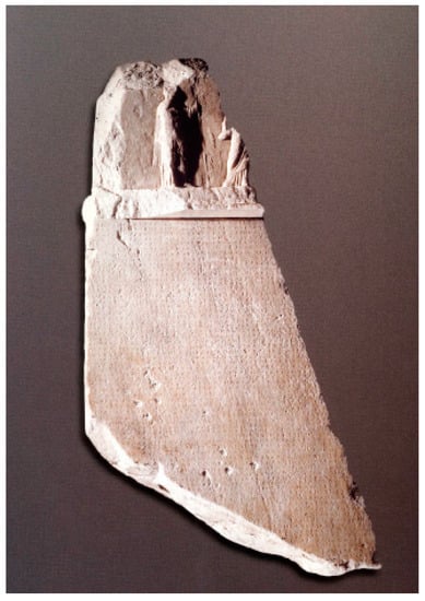 The contract is written on a Pentelic marble stele (ca. 2nd half of the 4th century BC) and was discovered in Chalcis (1860). Presumably, the text written on the stele is the oldest complete contract of such a capitalistic construction scheme in history. It has long been in the Epigraphic Museum of Athens (EM11553) and is shown in Figure 7. The project called BOT (Build, Operate, and Transfer; the rather wordy construction contracts of present day) [97].