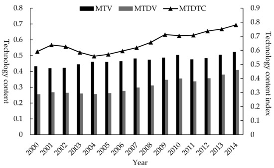 3.1. Overall Technology Content of China’s Manufacturing Exports