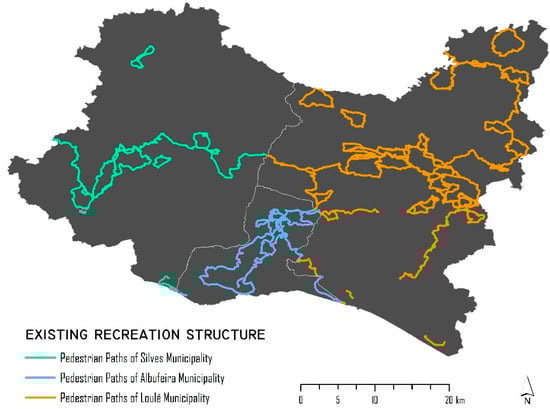In addition to the existing recreation structure, there are spheres in the study area that can still be incremented and interconnected, namely those that do not have paths, trails, or recreational spaces. However, this strategy must respect the landscape’s ecological sensitivity in order to represent a strategy for territorial cohesion and sustainable tourism development.