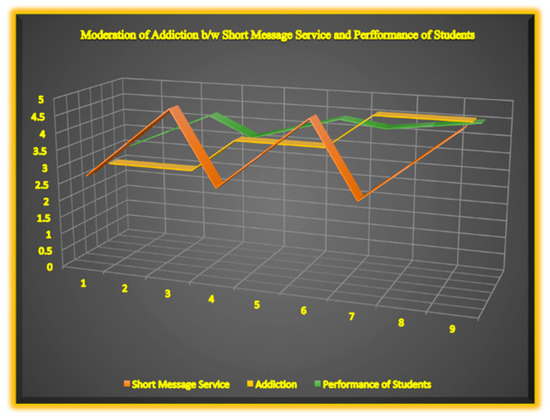Addiction is a significant moderator between short message service (SMS) and students’ academic performance.