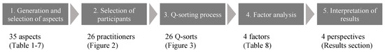 - Watts, S.; Stenner, P. Q-methodology. Handbook of Qualitative Research in Psychology; SAGE: London, UK, 2008. [Google Scholar]