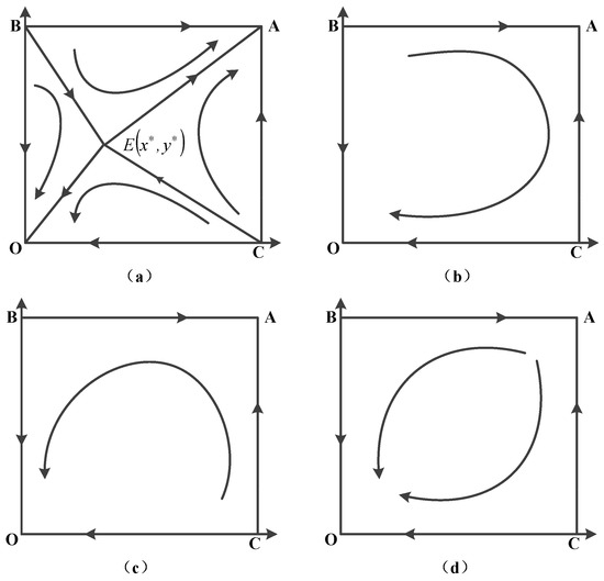 According to the four Scenarios’ stable results in Table 3, the corresponding evolutionary phase diagrams can be presented in Figure 1.