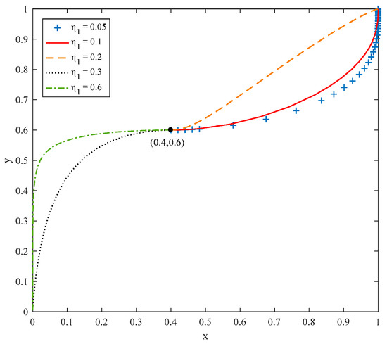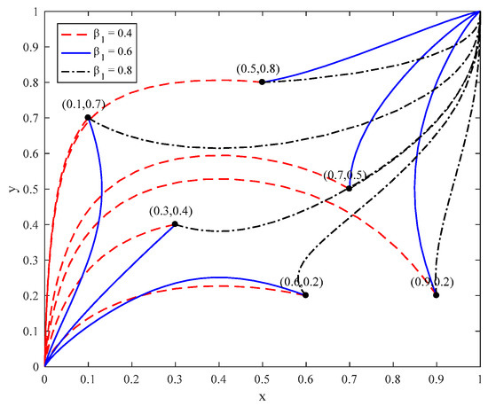 Assume region BECA is and region BECO is . If is larger than , the system will have a greater probability of convergence to . Therefore, the influence of knowledge sharing on the evolution can be determined by analyzing the factors that affect the size of .