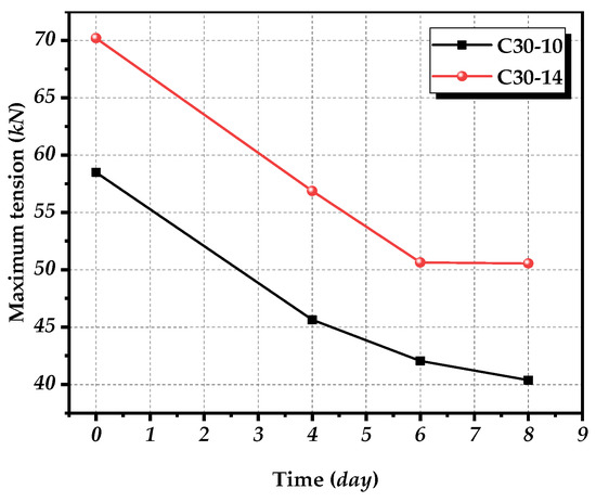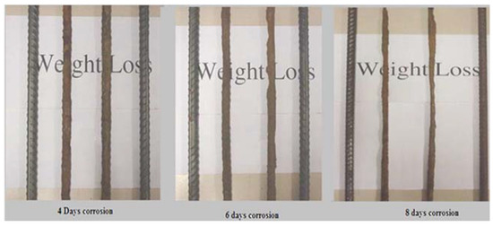 In this paper, electrochemical corrosion is used to test corroded rebar of different diameters, and it is found that the components which do not participate in the energized corrosion increases as the corrosion rate of rebar increases. At the same time, it can be clearly seen from Figure 8 that the reduction in bearing capacity after four days of corrosion is significantly greater than the latter.
