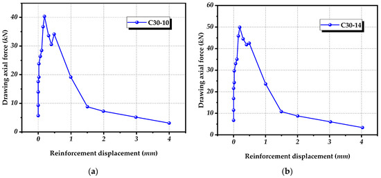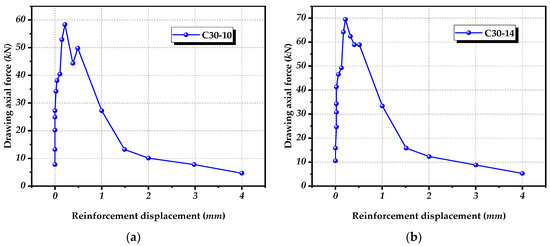 C30 Standard Test Piece Pull-out Load Displacement Diagram. (a): C30-10; (b): c30-14.