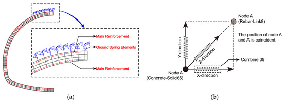 ANSYS numerical model: (a) RCS model with Ground Spring Elements; (b) Bond-Slip Spring Element. The two legends above are all front views of the model.
