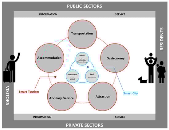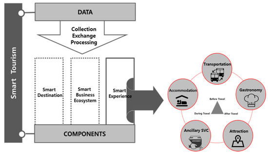 - Um, T.; Chung, N. Does smart tourism technology matter? Lessons from three smart tourism cities in South Korea. Asia Pac. J. Tour. Res. 2019. [Google Scholar] [CrossRef]