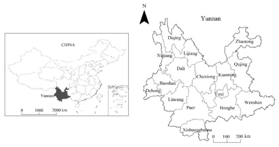 - Yunnan Provincial Bureau of Statistics. Available online: http://www.stats.yn.gov.cn/ (accessed on 20 May 2019).