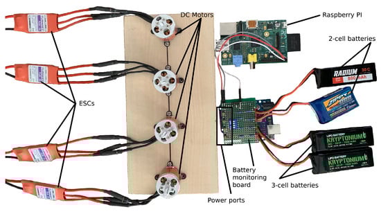 A battery test bed was designed and implemented (Figure 7), using a Raspberry Pi as an on-board computer for collecting the battery data and relaying the information to the blockchain.