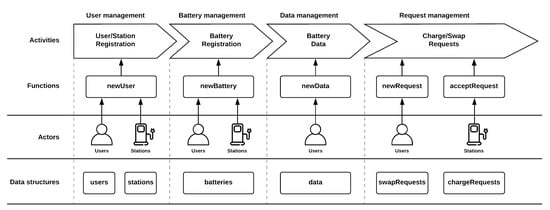 The users can register on the system, add new batteries, and create charge or swap requests. These requests are handled by a smart contract and are deployed on the network.