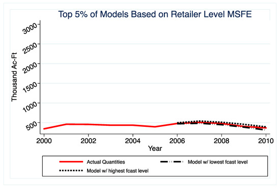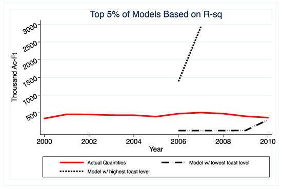 Aggregate Forecast Error (in 1000 Acre-Feet) of the Top 5% of the Models—Dependent Variable: Quantity Per Employee.